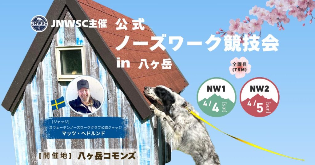 2026年4月公式ノーズワーク競技会 in 八ヶ岳 4/4(NW1)& 4/5(NW2)