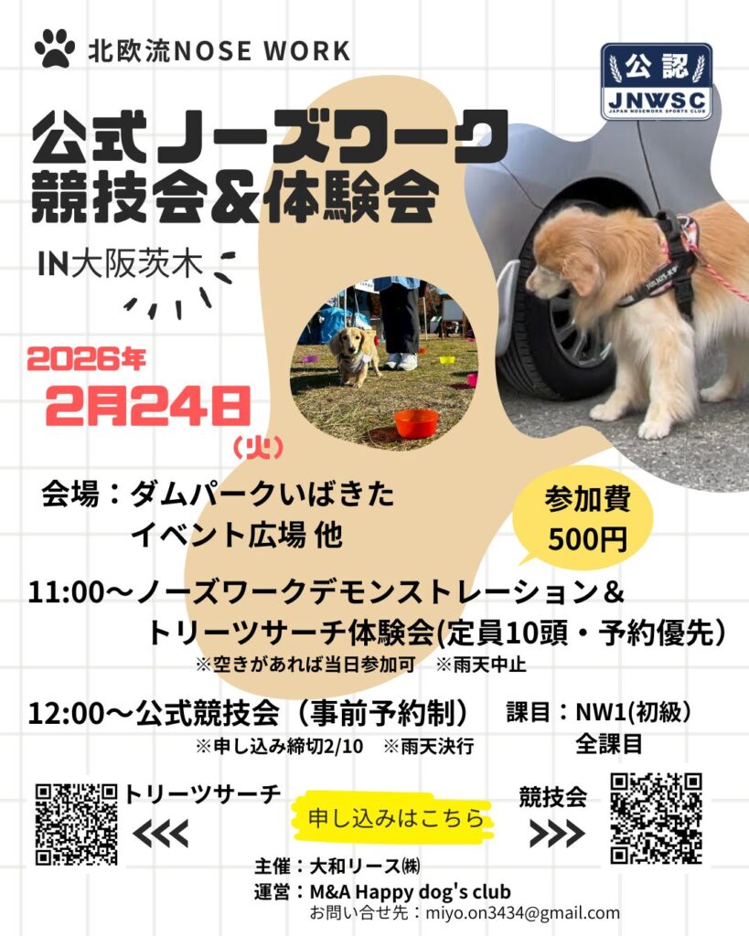 競技会タイトル:公式ノーズワーク競技会 in大阪茨木
